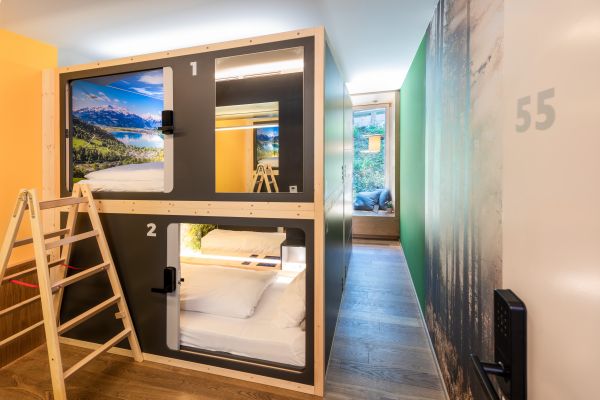 Übernachtung in unseren Swiss Capsules für bis zu vier Personen in unterschiedlichen Themenzimmern