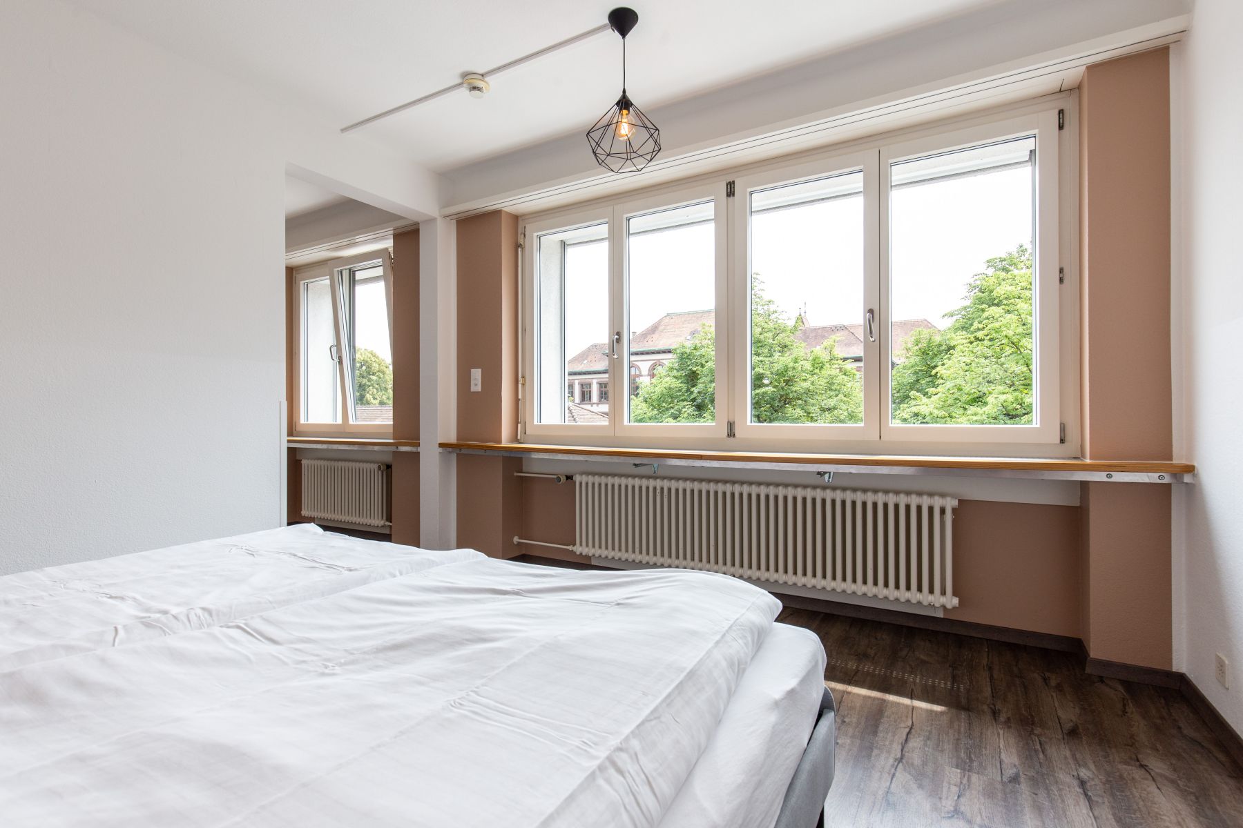 Das 25qm grosse Zimmer ist mit Bett, Nachttisch, Kleiderschrank, Schreibtisch, Stuhl, Beleuchtung und Vorhängen ausgestattet sowie eigenen Lavabo im Zimmer. Badezimmer sind auf jeder Etage mit Dusche und WC, Nebenkosten inklusive, Tägliche Reinigung der Sanitären Anlagen plus wöchentliche Zimmerreinigung inklusive.