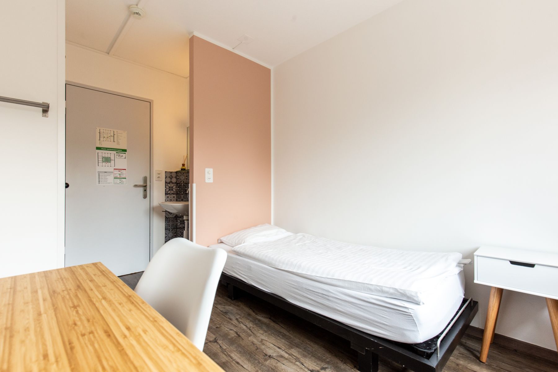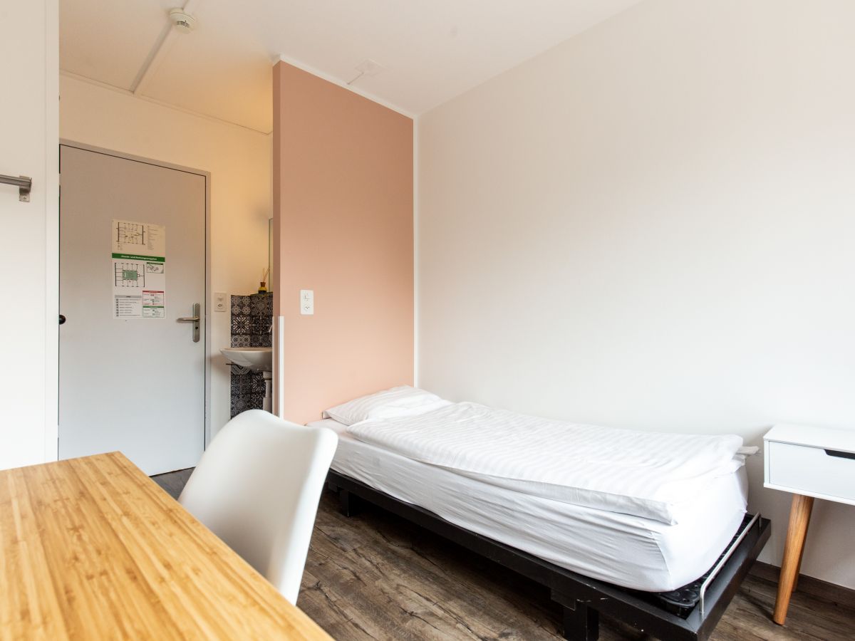 Das 7qm grosse Zimmer ist mit Bett, Nachttisch, Kleiderschrank, Schreibtisch, Stuhl, Beleuchtung und Vorhängen ausgestattet sowie eigenen Lavabo im Zimmer. Badezimmer sind auf jeder Etage mit Dusche und WC, Nebenkosten inklusive, Tägliche Reinigung der Sanitären Anlagen plus wöchentliche Zimmerreinigung inklusive.