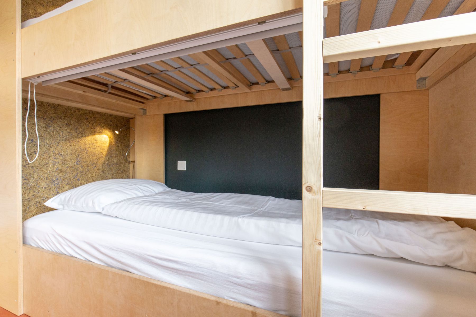 Im Komfort Mehrbettzimmer übernachtest du günstig in einem Stockbett, mit Rollos für mehr Privatsphäre. Auf der Etage stehen dir Dusche und WC zur Verfügung. Im Hyve pflegst du aber auch den Austausch mit anderen Gästen und unserer Community.